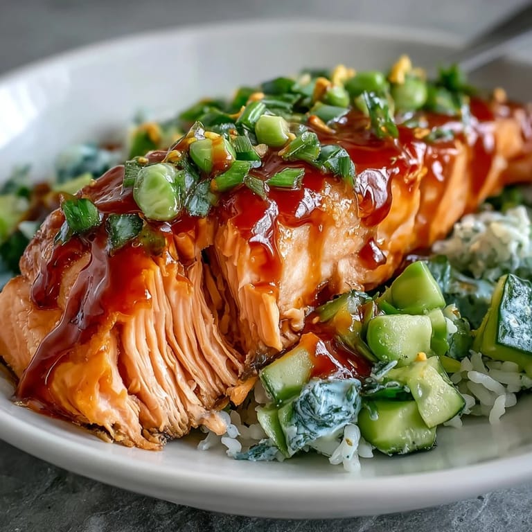 Pin it My neighbor brought over this bang bang salmon bowl one evening, and I watched her assemble it with such ease that I felt a little foolish for always overthinking weeknight dinners. The way the creamy sauce pooled over the warm rice while the cucumber salsa stayed crisp underneath felt like a small revelation, the kind that makes you realize some of the best meals don't require restaurant-level technique. She handed me a bite and I was immediately hooked by the balance of heat, sweetness, and that tangy lime backbone pulling everything together. Now I make it regularly, though I've learned to prepare the salsa just before eating so it doesn't get watery and sad.