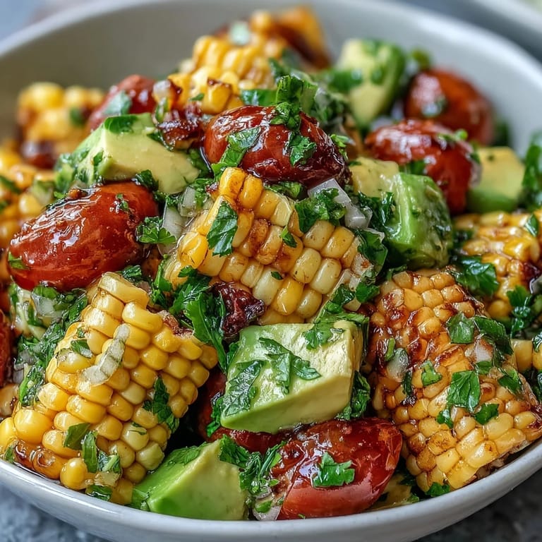 Pin it There's something about mid-July when the farmers market overflows with corn still warm from the field that makes you want to build an entire meal around it. One afternoon, I grabbed three ears on impulse along with the most perfect tomatoes I'd seen all summer, and by the time I got home, I knew exactly what needed to happen—a salad that celebrated each ingredient without fussing them up. The lime juice hit the bowl first, bright and sharp, and suddenly everything else just fell into place.