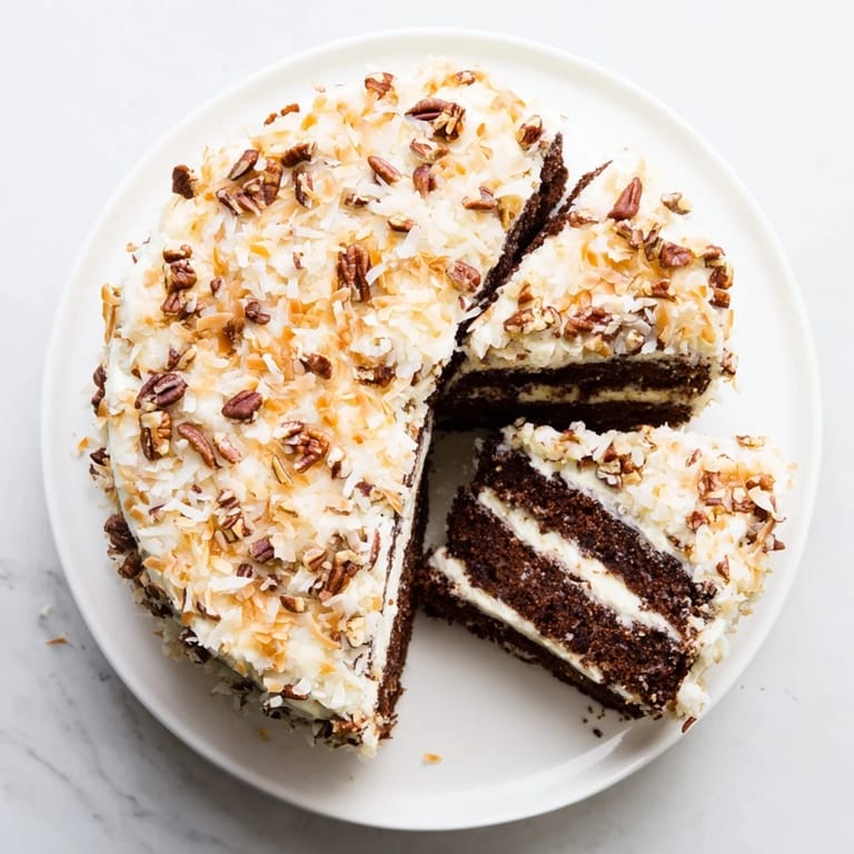 Pin it The first time I attempted German Chocolate Cake, I accidentally doubled the boiling water in the batter and panicked watching it pour into the mixing bowl like chocolate soup. My grandmother, calm as ever, simply said that cake knows what it is doing. She was right. That thin batter produces the most incredibly moist crumb you will ever taste.