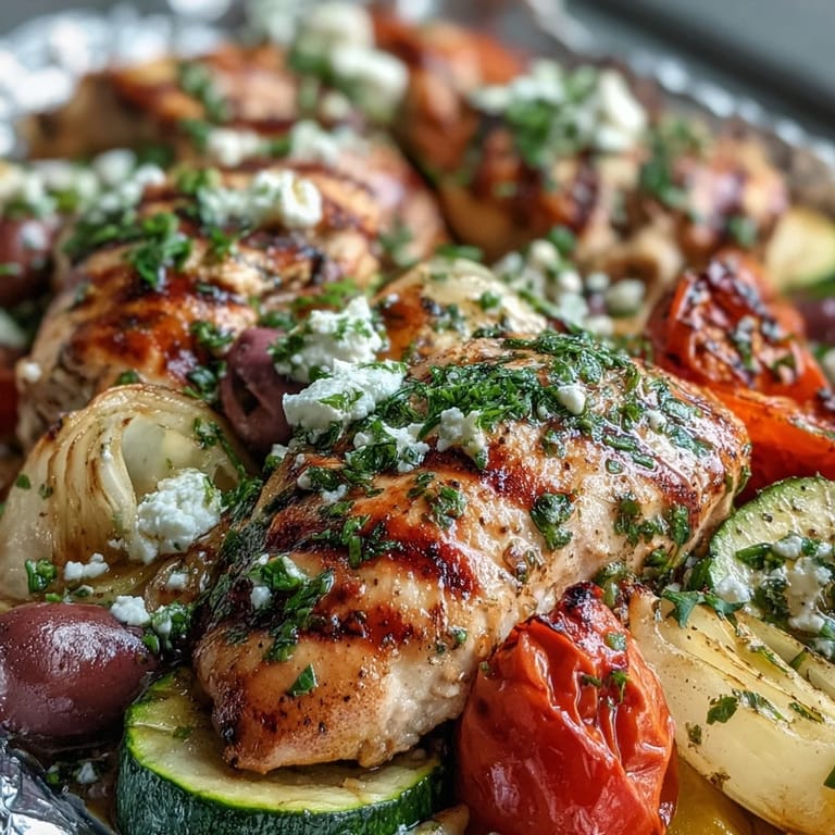 Pin it My neighbor knocked on the fence one summer evening, holding a magazine with a picture of foil packets steaming on a grill. She said her Greek island vacation had ruined her for regular chicken dinners, and asked if I could help her recreate that magic at home. I'd never thought much about foil packet cooking before, but something clicked when I realized how the steam trapped inside could turn simple chicken and vegetables into something genuinely restaurant-worthy. That first attempt, I burned my fingers opening the packets too eagerly and somehow ended up with the most tender, juicy chicken I'd ever made. Now I can't imagine cooking chicken any other way during warmer months.