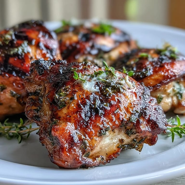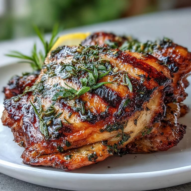 Pin it My neighbor knocked on the fence one summer evening with a bag of fresh lemons from her tree, asking if I could use them. That's when I stopped overthinking chicken and learned that thighs—those neglected cuts everyone overlooks—are actually where the magic lives. A quick marinade with those bright lemons, handfuls of herbs, and an hour of patience transformed dinner into something I'd been chasing at restaurants. The grill did the rest, and suddenly I had a weeknight meal that tasted like we'd planned something special.