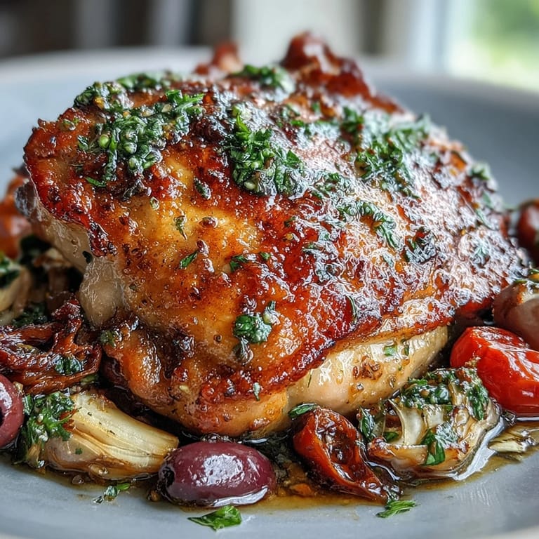 Pin it There's something about a one-pan dinner that makes a weeknight feel less like an obligation and more like a small celebration. I discovered this Mediterranean chicken recipe during a moment of pure frustration—standing in front of an overflowing sink after a long day, I realized I needed something delicious that wouldn't multiply my cleanup. What emerged was this golden, herb-scented skillet that somehow tastes like a coastal vacation despite taking less than an hour from start to finish.
