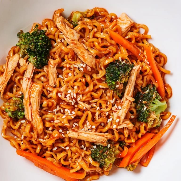 Pin it The wok was smoking before I even realized the heat was too high. I was trying to impress my roommate with something quick but restaurant-worthy, and this spicy ramen stir-fry came together in the chaos of a Tuesday night when the fridge was almost empty. The smell of garlic and ginger hitting hot oil filled our tiny kitchen, and suddenly we were both standing there, watching noodles transform into something we'd actually pay for. That first bite had just enough heat to make us reach for water, then immediately go back for more. It became our default dinner whenever we needed comfort with a kick.