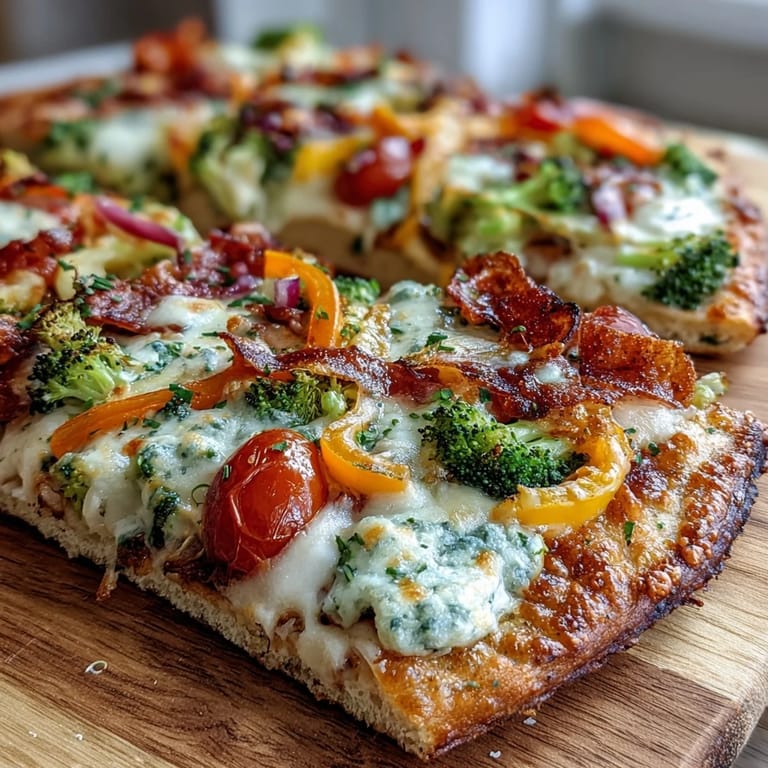 For the most vibrant rainbow effect, take your time arranging the vegetables in neat rows, keeping similar colors together. Dice all vegetables to roughly the same size to ensure even cooking and a professional appearance. If your broccoli florets are large, blanch them briefly in boiling water for 2 minutes before adding to the pizza to ensure they cook through. Pat vegetables dry with paper towels if they're wet to prevent a soggy crust. Pre-shredding your cheese and pre-dicing all vegetables before you start assembling makes the process much faster and more enjoyable.