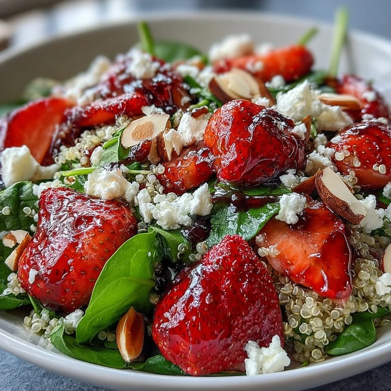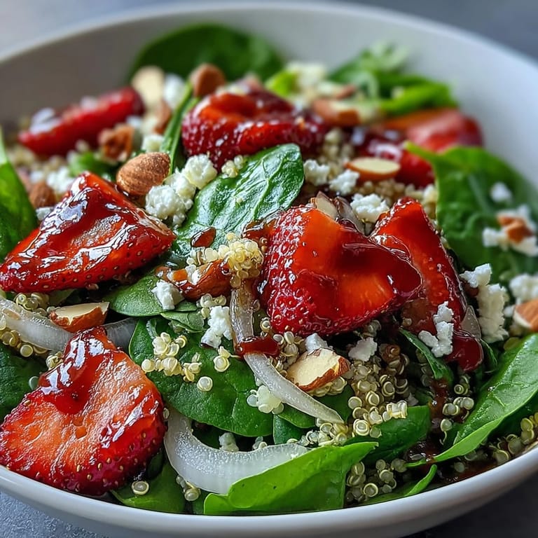 Pin it There's something about a strawberry and spinach combination that feels like it shouldn't work, but somehow does perfectly on a warm afternoon. My neighbor brought this salad to a potluck last June, and I watched people go back for thirds—which never happens at these things. She mentioned the secret was letting the quinoa cool completely so it wouldn't wilt the greens, and using good balsamic vinegar that actually tasted like something. That detail stuck with me, and now I make this whenever I need a salad that tastes fresh instead of obligatory.