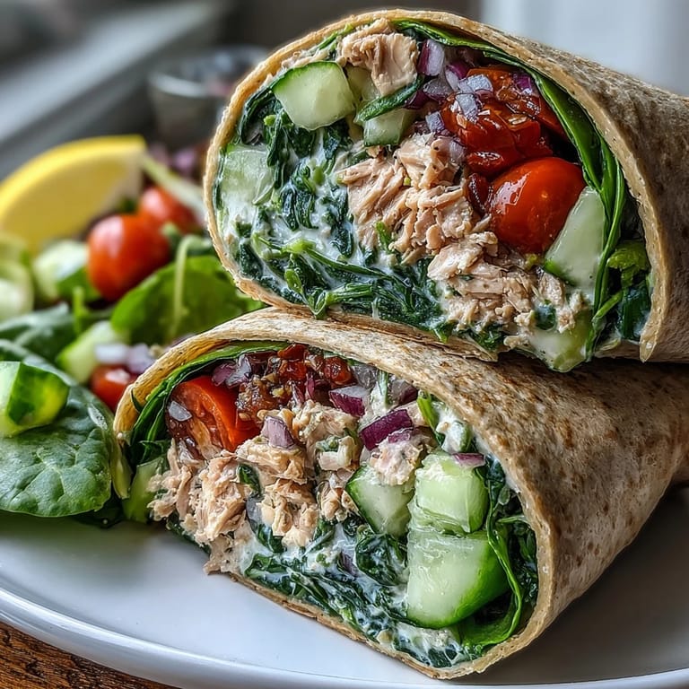 Pin it My coworker walked past my desk one Tuesday with the most appealing lunch I'd seen in weeks—a tightly rolled wrap that somehow looked both indulgent and impossibly healthy. When she mentioned it took her ten minutes to throw together, I was skeptical until she explained the magic: no mayo, no complicated techniques, just tuna and white beans bound together with lemon and olive oil. By the next morning, I was standing in my kitchen recreating it, and honestly, it became my Monday-through-Friday obsession.