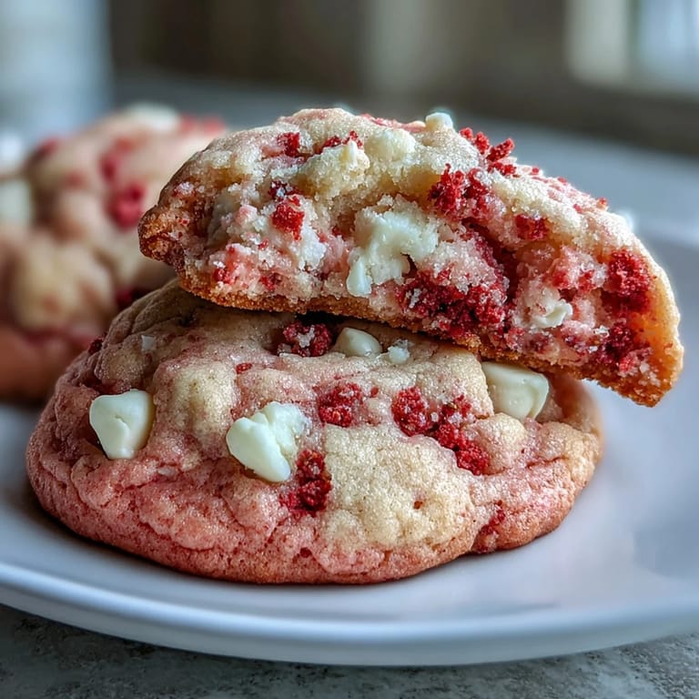 Pin it My kitchen smelled like a strawberry patch last February when I decided to bake something pink and hopeful for no particular occasion. These cookies came together almost by accident, born from a craving for something that felt both elegant and genuinely easy to make. The freeze-dried strawberries caught my eye at the grocery store and seemed to whisper possibilities, while white chocolate chips promised that creamy sweetness that makes people close their eyes when they bite in. What started as a simple afternoon of baking turned into something I couldn't stop making.