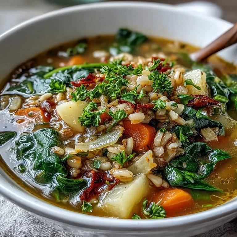 Pin it There's something about the first warm day after winter that makes me crave soup, which sounds backwards until you realize it's about transition, not temperature. Last March, I stood at my kitchen window watching the last patches of snow melt while chopping carrots and parsnips, and it hit me that spring vegetables were still weeks away. So I reached for what the market had: root vegetables, hardy greens, and barley to tie it all together. That bowl became my bridge between seasons, and now whenever the calendar hints at change, I make it again.